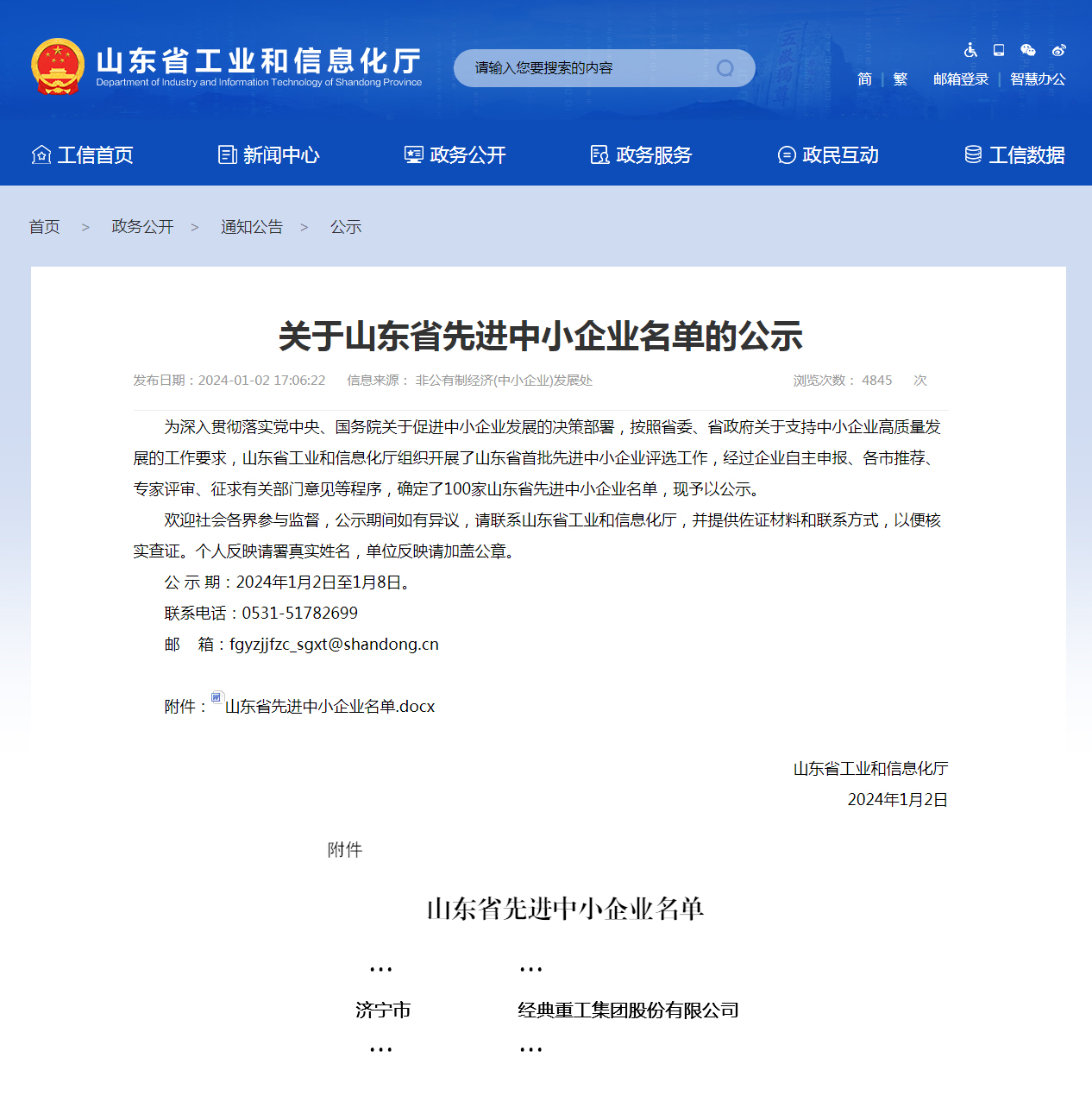 首批上榜!經典集團入選山東省首批先進中小企業公示名單