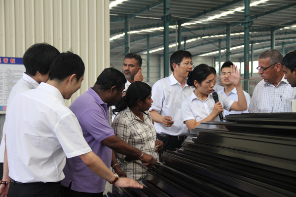 亞洲國家行業商會領導一行參觀了經典集團文化中心、項目管理中心、綜合辦公室、營銷中心和鋼結構制造生產車間,杜福生總經理介紹了經典集團生產經營、技術創新、產學研合作、對外承攬工程等有關情況,并與外賓們親切交流。