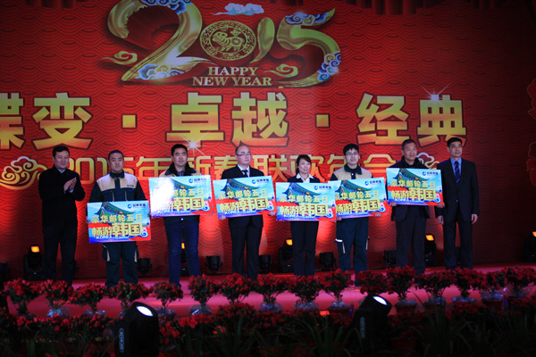經典集團董事長苗樹文發表了熱情洋溢的講話,簡要回顧了2014年公司取得的成績,鼓舞公司員工精誠團結、奮發有為,穩步實現2015年公司科學發展、創新發展,并向全體參會人員及家屬致以新年的問候。隆重表彰了2014年涌現出的先進個人和先進集體,營造了人人學習先進、人人爭當楷模的濃厚氛圍。