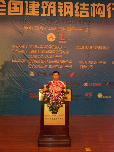 2013年全國建筑鋼結構行業(yè)大會19日在重慶召開,山東經(jīng)典集團總經(jīng)理杜福生及公司主要領導一行五人參加了本次會議。